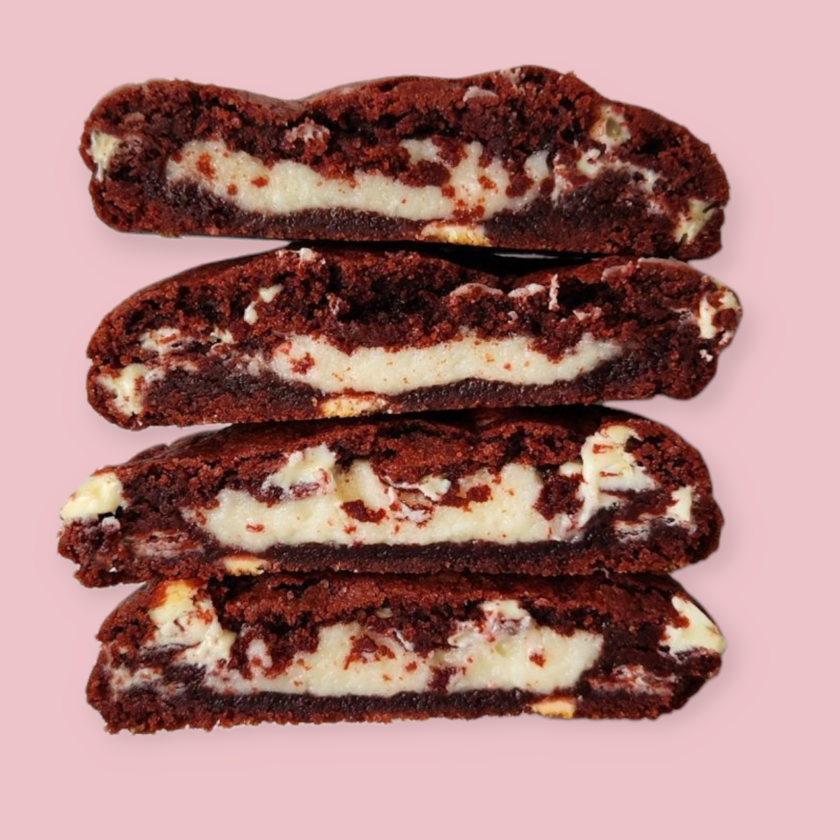En red velvet smaksopplevelse med hint av kakao og vanilje, belgisk kvalitetssjokolade fra Callebaut og en kjerne av ostekrem.